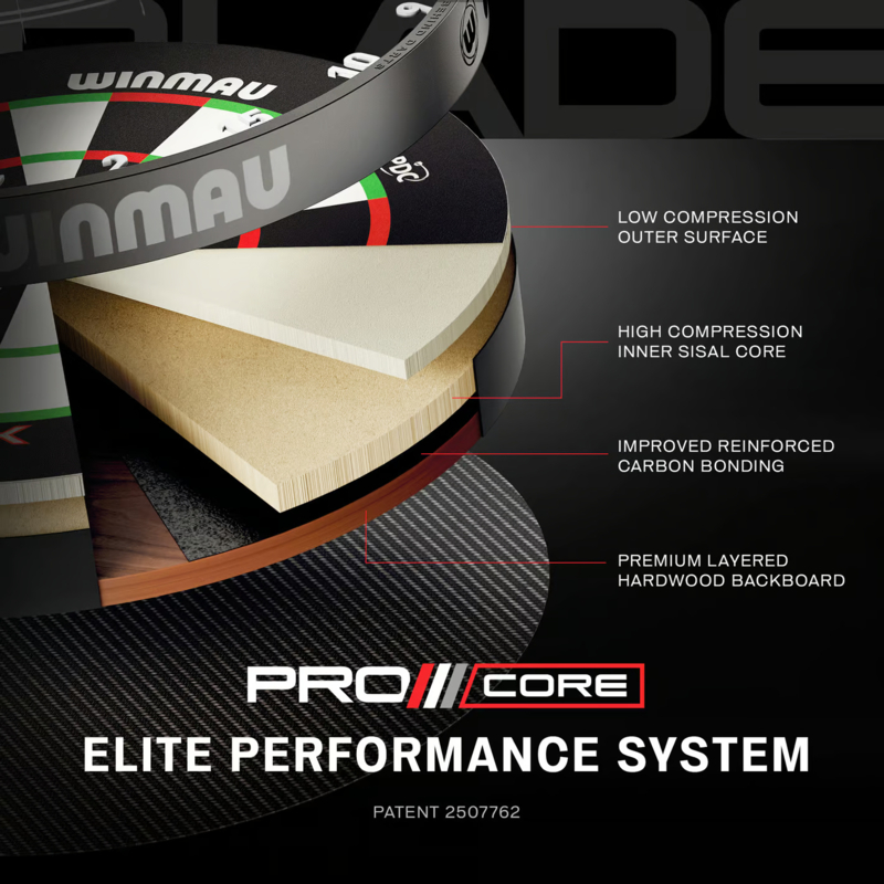 De meest geavanceerde dartbordconstructie ter wereld, met gelaagde sisaldichtheid om de oppervlakweerstand te verminderen voor betere dartpenetratie, terwijl de binnenkern wordt samengedrukt om kinetische energie te absorberen. Deze sisaldiepte is 13% groter en is verbonden met een premium gelaagde hardhouten achterplaat.